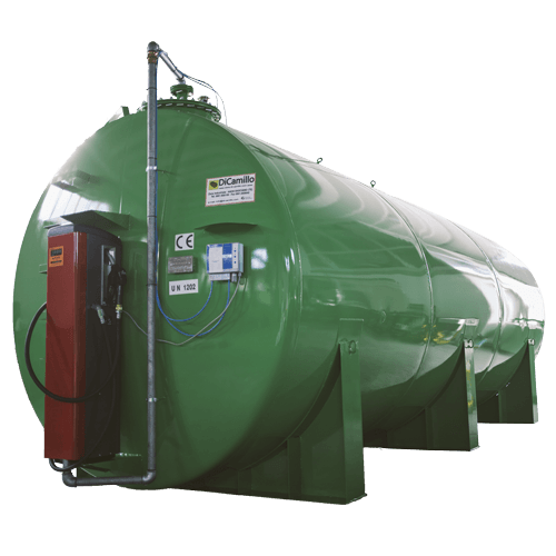 Nagy tárolási kapacitású föld feletti vízszintes tengelyű, henger alakú gázolaj tartály, amelyet UNI EN 12285-2, A kategóriás standardok szerint, S235JR UNI EN 10025 szénacél lemezekből gyártanak. A 30000 literes föld feletti dupla alumínium gázolaj tartály UNI EN 288 tanusítványú és tartószánnal van felszerelve.